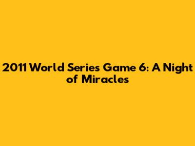 So there you have it, guys! A deep dive into the magical night that was Game 6 of the 2011 World Series. This game will forever be etched in the memories of baseball fans around the world. It was more than just a game; it was a testament to the human spirit and a reminder that anything is possible. Whether you're a die-hard Cardinals fan, a Rangers supporter, or just a lover of baseball, Game 6 is a story worth remembering and sharing. And who knows, maybe we'll see another game like it someday. Until then, we'll always have the memories of that incredible night in St. Louis.