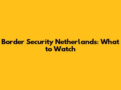 Border Security Netherlands: What To Watch