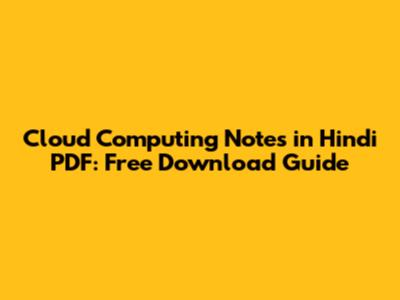 Cloud Computing Notes In Hindi PDF: Free Download Guide