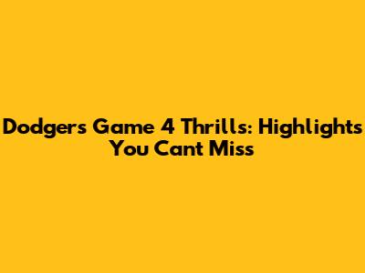 Dodgers Game 4 Thrills: Highlights You Can't Miss