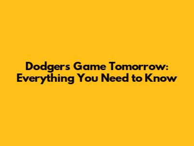 Dodgers Game Tomorrow: Everything You Need To Know