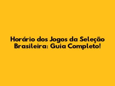 Horário Dos Jogos Da Seleção Brasileira: Guia Completo!