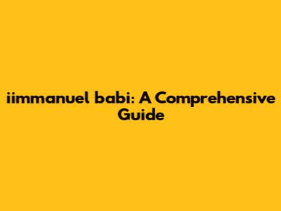 Iimmanuel Babi: A Comprehensive Guide