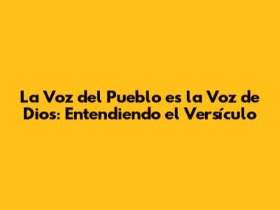 La Voz Del Pueblo Es La Voz De Dios: Entendiendo El Versículo
