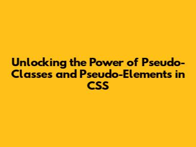Unlocking the Power of Pseudo-Classes and Pseudo-Elements in CSS