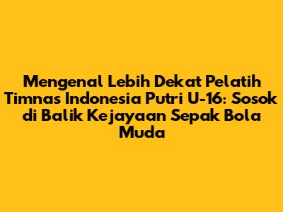 Pelatih Timnas Indonesia Putri U-16 adalah pahlawan tanpa tanda jasa yang berdedikasi untuk kemajuan sepak bola putri Indonesia. Mereka adalah sosok yang berperan penting dalam membentuk tim impian, mengembangkan pemain muda, dan meracik strategi kemenangan. Dengan kualifikasi yang mumpuni, pengalaman yang luas, dan semangat juang yang tinggi, para pelatih ini terus berupaya membawa sepak bola putri Indonesia ke tingkat yang lebih tinggi. Dukungan dari berbagai pihak, termasuk pemerintah, federasi, dan masyarakat, sangat dibutuhkan untuk mewujudkan harapan tersebut. Mari kita dukung para pelatih dan pemain, serta berharap sepak bola putri Indonesia dapat meraih prestasi yang membanggakan di masa depan.