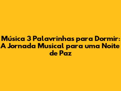 Música 3 Palavrinhas: A Canção De Ninar Perfeita Para Um Sono Tranquilo
