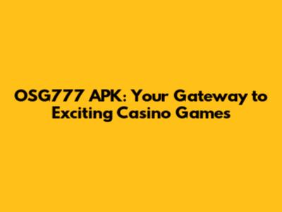 OSG777 APK: Your Gateway To Exciting Casino Games