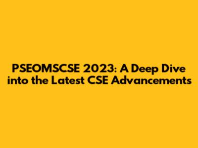 PSEOMSCSE 2023: Unveiling The Latest CSE Developments