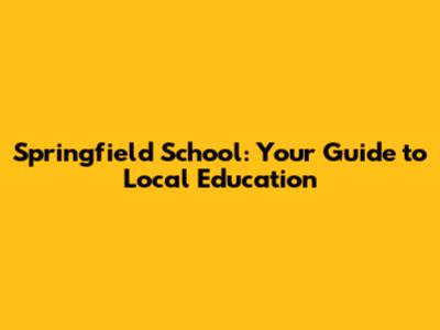 Springfield School: Your Guide To Local Education