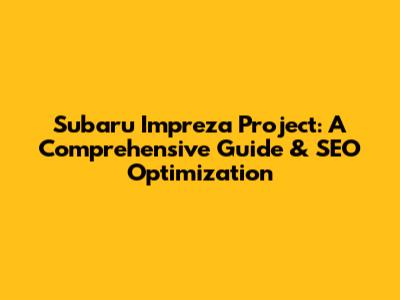 Subaru Impreza Project: Guide & SEO Optimization