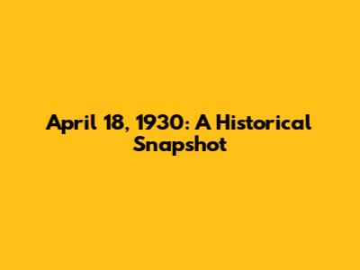 What Happened On April 18, 1930? A Historical Snapshot