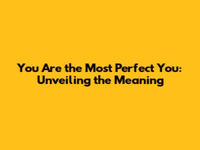 You Are The Most Perfect You: Unveiling The Meaning